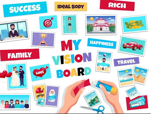 A collection of images or items arranged in a way to support you in realising your objectives or vision are called vision boards. You assemble a board with craft supplies, magazine cuttings, and other random stuff. Your dream board serves as a constant reminder of your values whenever you need to make a decision in life. Consider it to be a nudge in the correct direction. This board may be digital or physical. For long-term objectives, such as completing your 5-year plan, you can use a vision board. Or you may also make an annual vision board. The possibilities for a vision board are virtually endless.